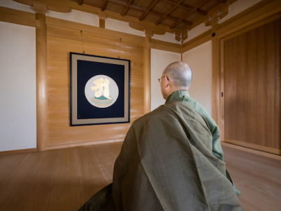 这是真言宗的一种呼吸法和冥想法。坐在表示大日如来的“阿”的梵文前,为了使宇宙本身的大日如来和自己融为一体,进行修炼。