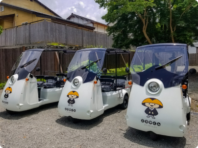 高野山を小型電気自動車で周遊していただく「EV車のレンタル」を行っています。 その名も「EVこうやくん」です。