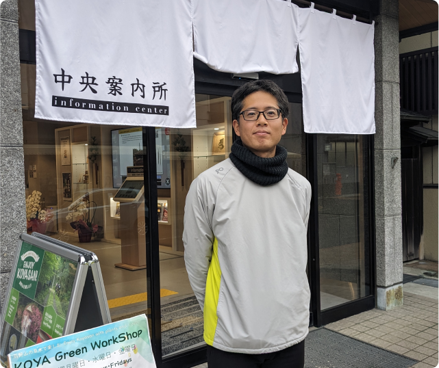 高野町としましても、金剛峯寺様はじめ各事業所の皆さまと協働で「訪れたいまち」を目指し、「住んでみたい」人を応援する施策を実施及び検討しております。多くの観光客をお迎えする「おもてなし度」を向上させていくためにも高野町で働きたい人を広く募っています。高野町での移住・仕事・住まいを同時並行にして進めていきますので、ぜひ一度、弘法大師空海のお膝元で生活できる高野山にきていただきたく、どうかよろしくお願いします。