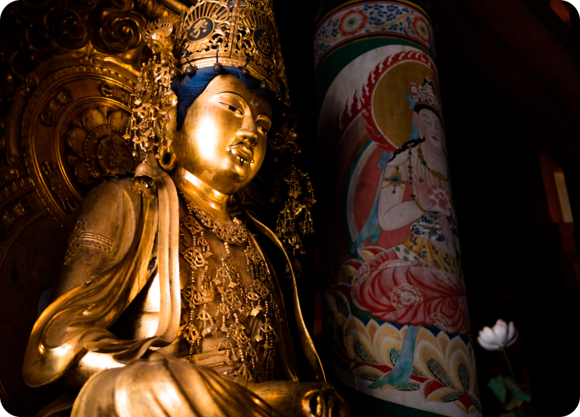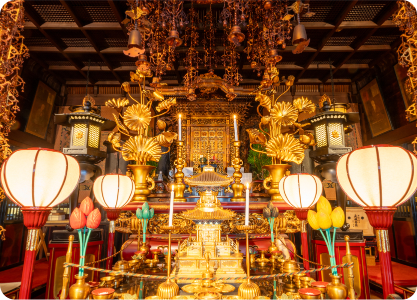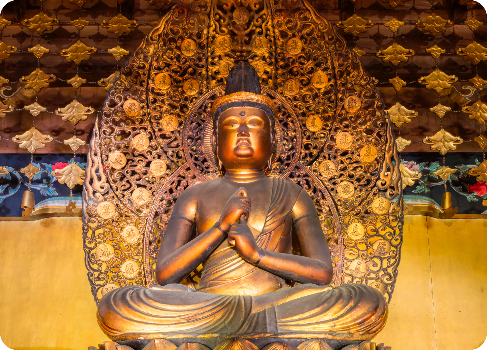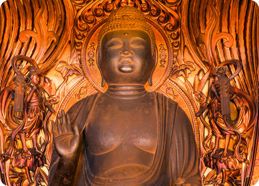西方にある極楽浄土の教主とされる仏様。法然上人や親鸞上人とゆかりある当寺の歴史的背景から浄土宗・浄土真宗のご本尊でもある阿弥陀如来をお祀りしています。