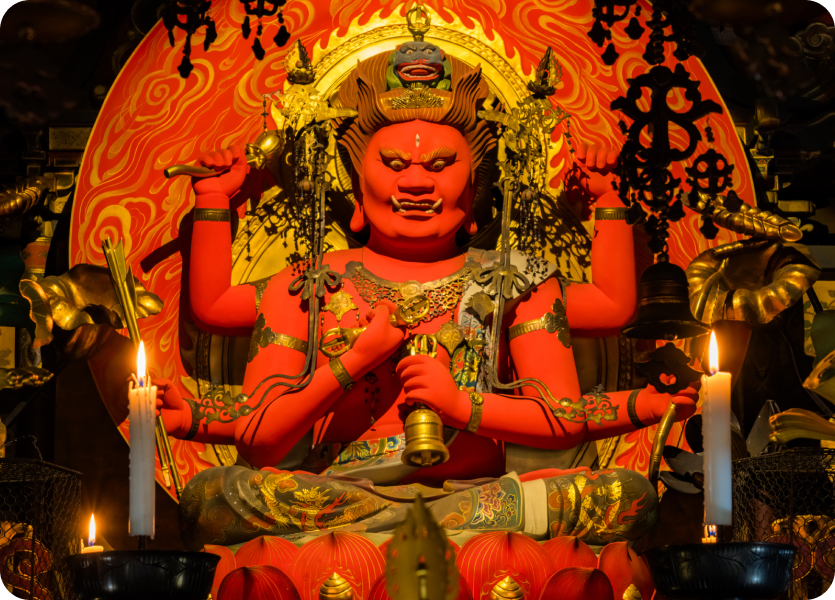 悉地院の御本尊は霊験あらたかな愛染明王。「悉地」とは密教の修行によって物事が成就することです。