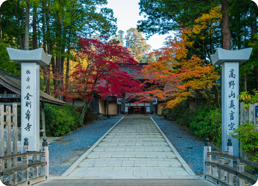 高野山は全体が金剛峯寺の境内です。仏像や仏画は信仰の対象ですから、周囲を気遣い、静かにお参りください。仏様のお名前や役割を知っておくと心豊かなお参りになるでしょう。仏様の真言を小声で唱えるのもおすすめです。真言がわからない場合は、弘法大師のご宝号「南無大師遍照金剛(なむだいしへんじょうこんごう)」と唱えるとよいでしょう。