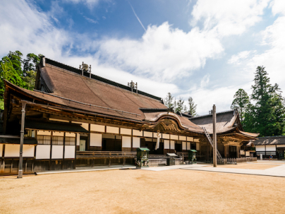 这是位于坛上伽蓝中央的高野山整体的总本堂,高野山的主要活动都在这里举行,是由弘法大师空海于819年建造,但是现在的建筑是1932年重建的。主佛是阿閦如来(还有一种说法是药师如来),秘藏佛像。